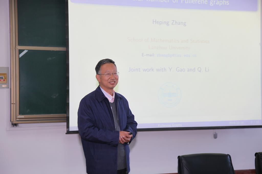 15日下午,厦门大学钱建国教授在数学院小会议室做了题为《Flow polynomials of a signed graph》的学术报告。22日下午,厦门大学张福基教授和兰州大学张和平教授在数学院大会议室分别做了《手性,扭结与 HOMFLY 多项式》和《On the Clar number of Fullerene graphs》的学术报告。张福基教授在报告中首先介绍了物理世界中的手性以及数学家如何精确描述这一概念,然后进一步介绍了它在医药与化学中的应用,最后讨论了如何用扭结的HOMFLY 多项式来判断它的手性。张和平教授在报告中首先介绍了具有重要化学背景的富勒烯图以及Clar数在预测富勒烯图的稳定性中的重要应用,然后详细阐述了他们在富勒烯图的Clar数的界以及达到界的极值富勒烯图的刻画方面所取得的一系列重要研究成果。钱建国教授在报告中详细介绍了在符号图的流多项式的研究中所取得的重要研究成果,特别是巧妙地定义了符号图的有向基础圈,并利用Whitney破圈定理给出了流多项式的系数的组合解释。