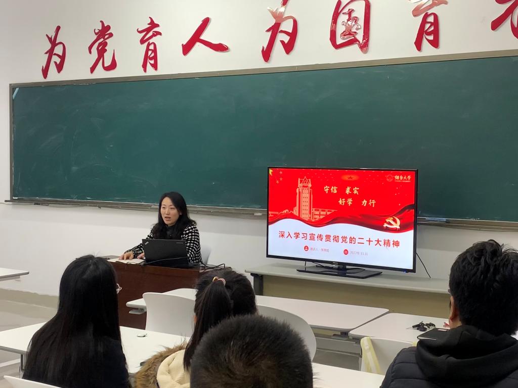 为深入学习宣传贯彻党的二十大精神,近期,烟台大学数学与信息科学学院党总支书记张寅晗面向学院党员宣讲党的二十大精神。