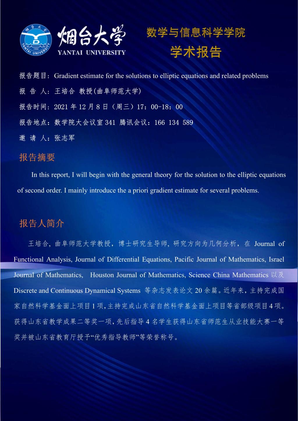 学术报告-王培合 教授(曲阜师范大学)