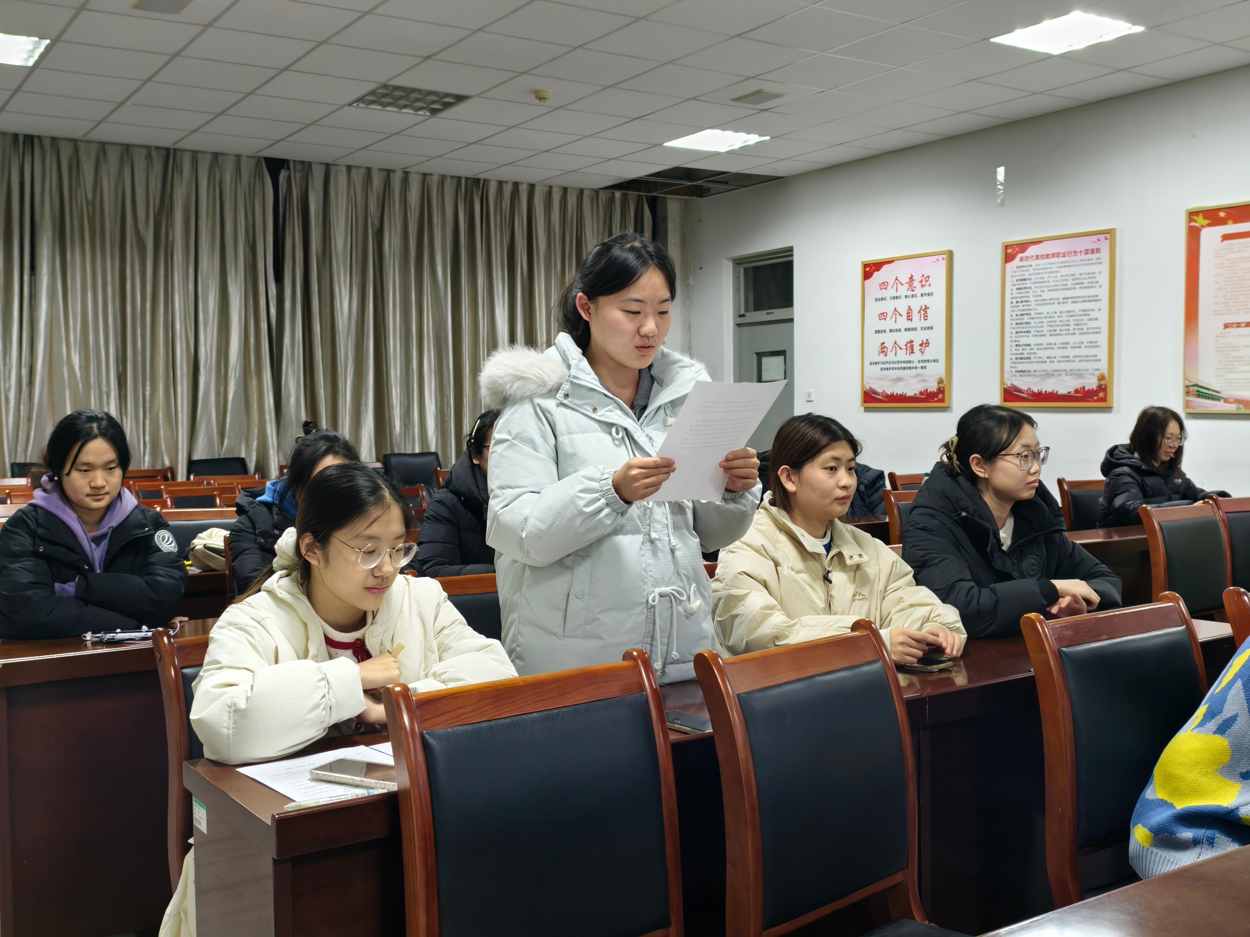 为深入学习贯彻党的二十届四中全会精神,引导青年党员将思想和行动统一到党中央决策部署上来,11月18日,数学与信息科学学院学生第一党支部在学院341会议室成功举办“学习全会精神 凝聚奋进力量”主题党日活动。支部全体党员齐聚一堂,共同参与了本次学习研讨。