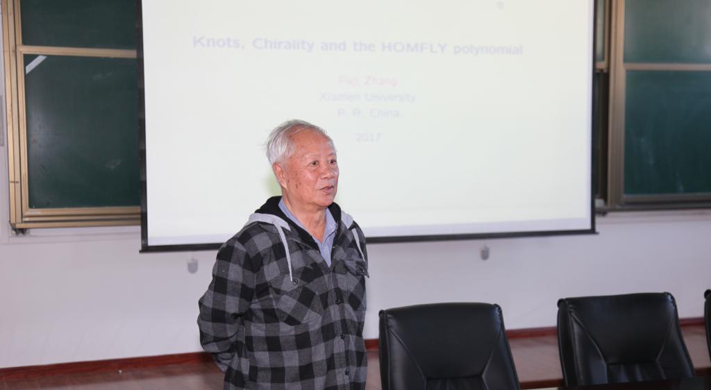 15日下午,厦门大学钱建国教授在数学院小会议室做了题为《Flow polynomials of a signed graph》的学术报告。22日下午,厦门大学张福基教授和兰州大学张和平教授在数学院大会议室分别做了《手性,扭结与 HOMFLY 多项式》和《On the Clar number of Fullerene graphs》的学术报告。张福基教授在报告中首先介绍了物理世界中的手性以及数学家如何精确描述这一概念,然后进一步介绍了它在医药与化学中的应用,最后讨论了如何用扭结的HOMFLY 多项式来判断它的手性。张和平教授在报告中首先介绍了具有重要化学背景的富勒烯图以及Clar数在预测富勒烯图的稳定性中的重要应用,然后详细阐述了他们在富勒烯图的Clar数的界以及达到界的极值富勒烯图的刻画方面所取得的一系列重要研究成果。钱建国教授在报告中详细介绍了在符号图的流多项式的研究中所取得的重要研究成果,特别是巧妙地定义了符号图的有向基础圈,并利用Whitney破圈定理给出了流多项式的系数的组合解释。