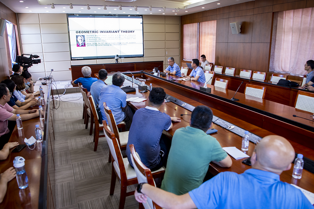 8月2日,中国科学院院士、美国科学与艺术院院士、北京大学讲席教授、北京国际数学研究中心主任田刚教授应邀访问烟台大学,就烟台大学数学学科建设情况开展座谈交流并作学术报告。烟台大学党委副书记、校长段培永,党委常委、副校长郝曙光参加活动。
