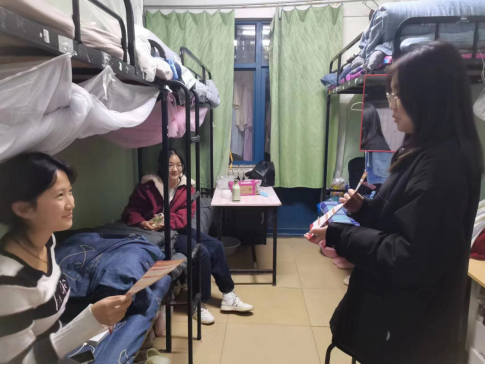 学院印制了“党的二十大精神”宣传单页,师生党员分别走进大一、大二各个学生宿舍与同学们交流。一方面,党员们同学生们一起认真学习了党的二十大精神,面对面交流了学习感受,对新生们关心关注的入党问题进行解答。另一方面,党员们宣传党规党章,引领学生树立正确的马克思主义信仰以及正确的人生观、世界观和价值观。同时,师生党员还了解了入学以来同学们的生活学习情况,为他们解决学习和生活方面的困惑提供帮助。