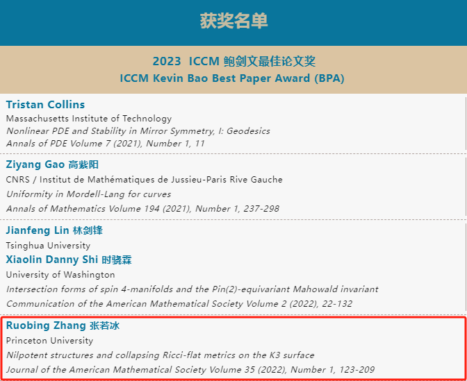 我院2007级校友张若冰获得2023年度世界华人数学家联盟最佳论文奖。