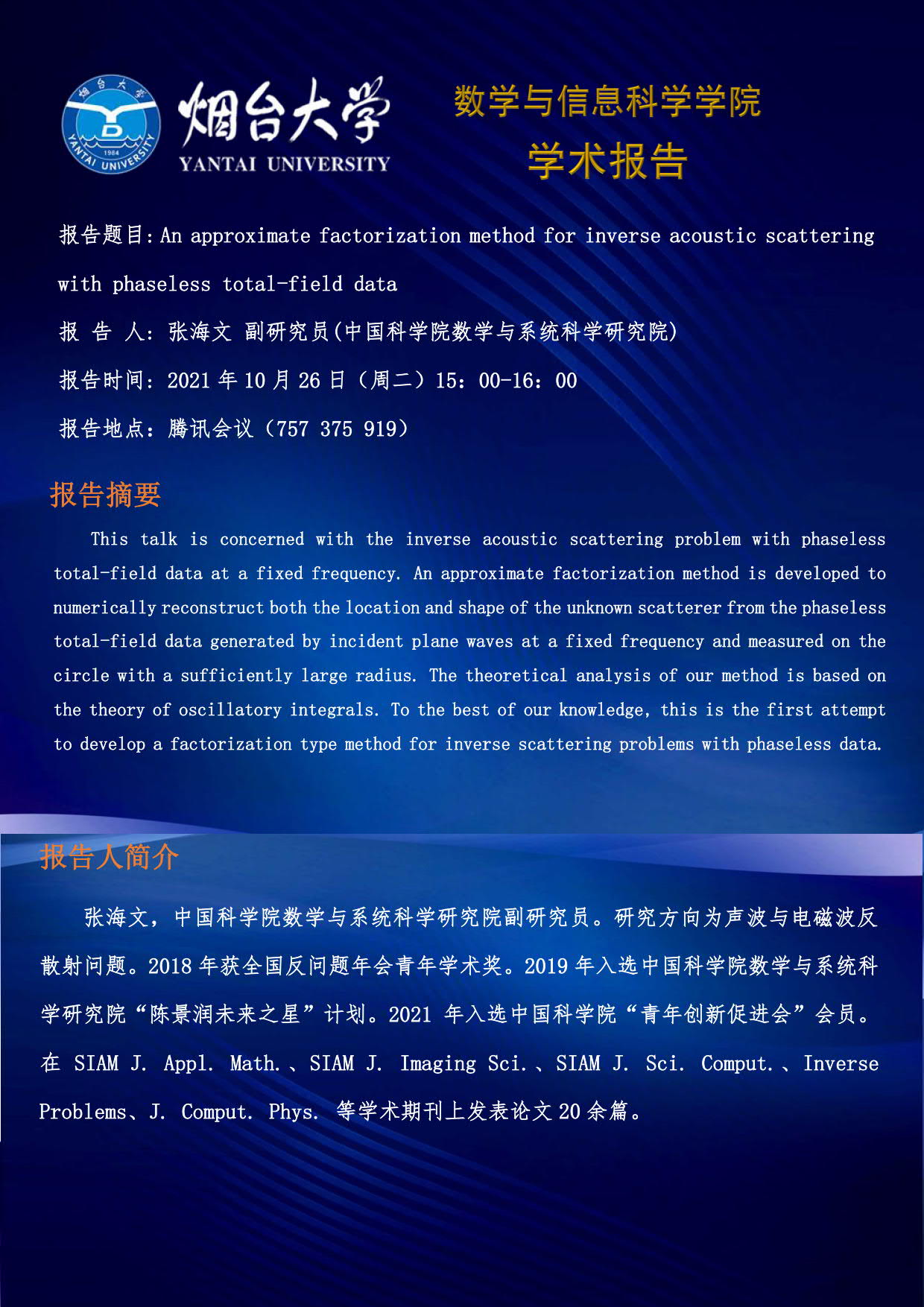 学术报告-张海文 副研究员(中国科学院数学与系统科学研究院)