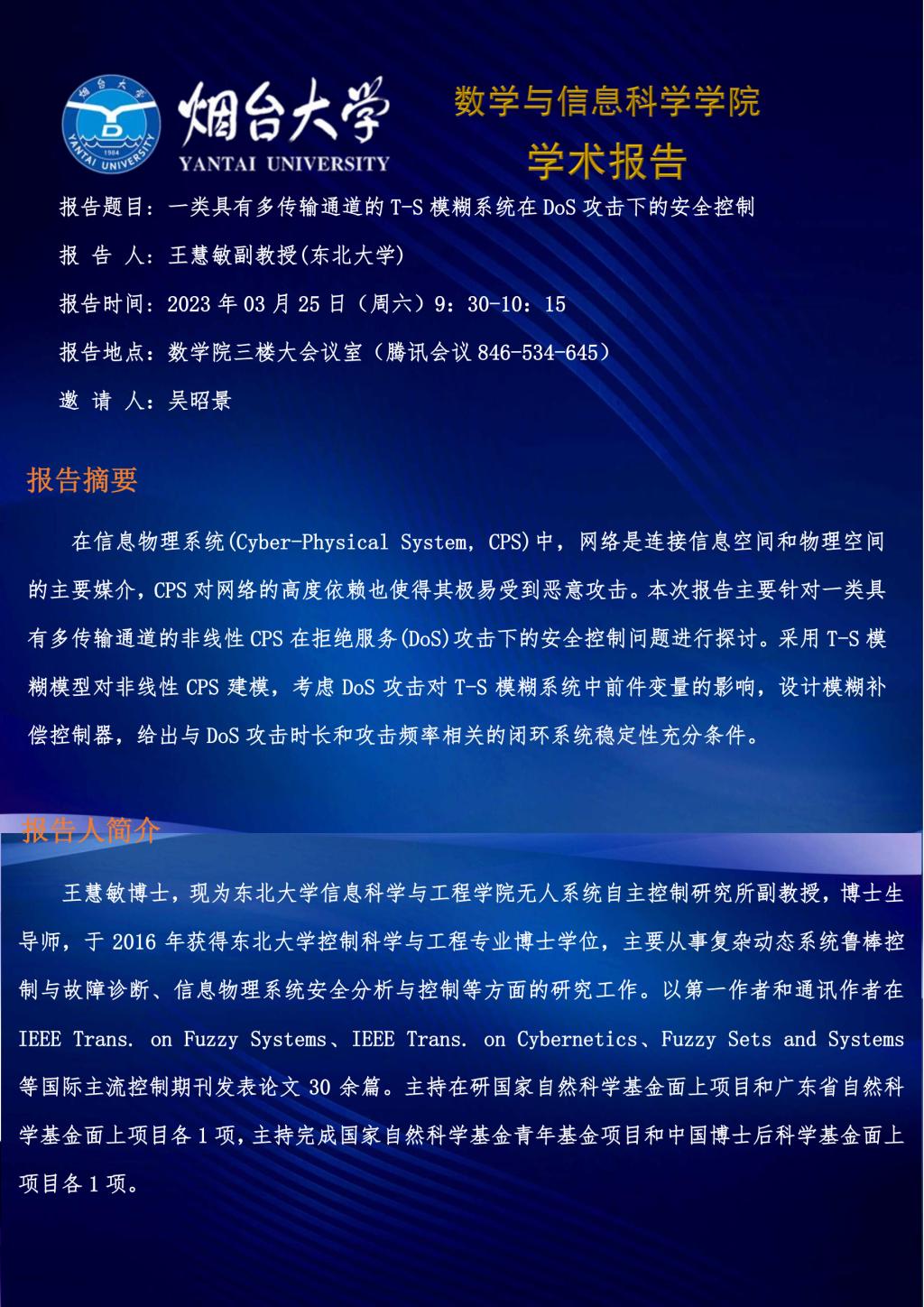 学术报告--王慧敏 副教授(东北大学)