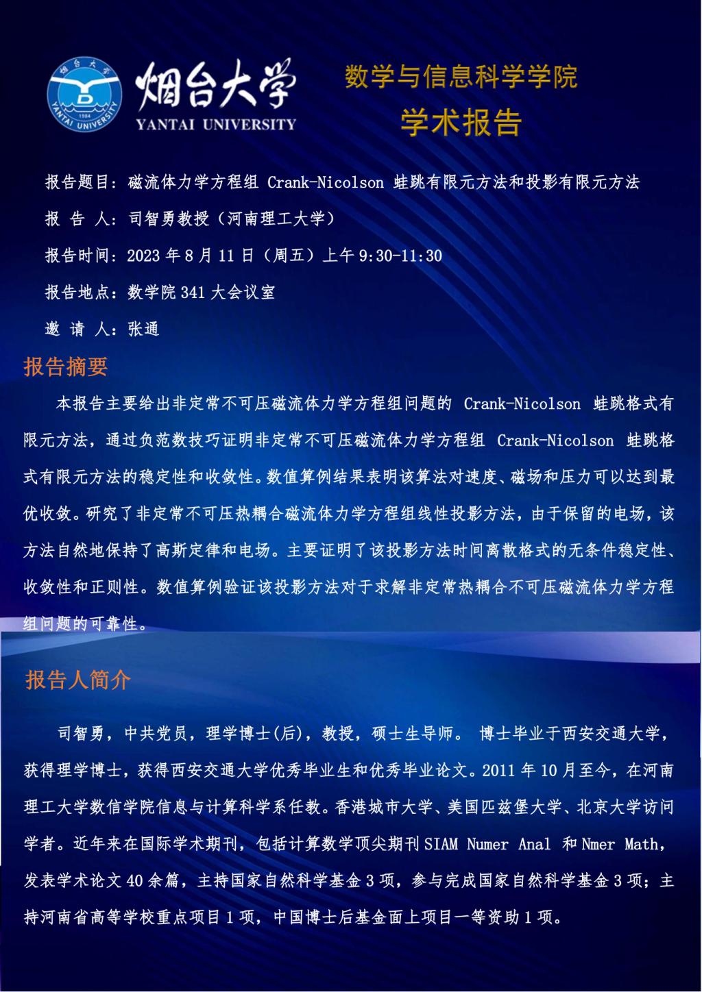 学术报告--司智勇 教授(河南理工大学)