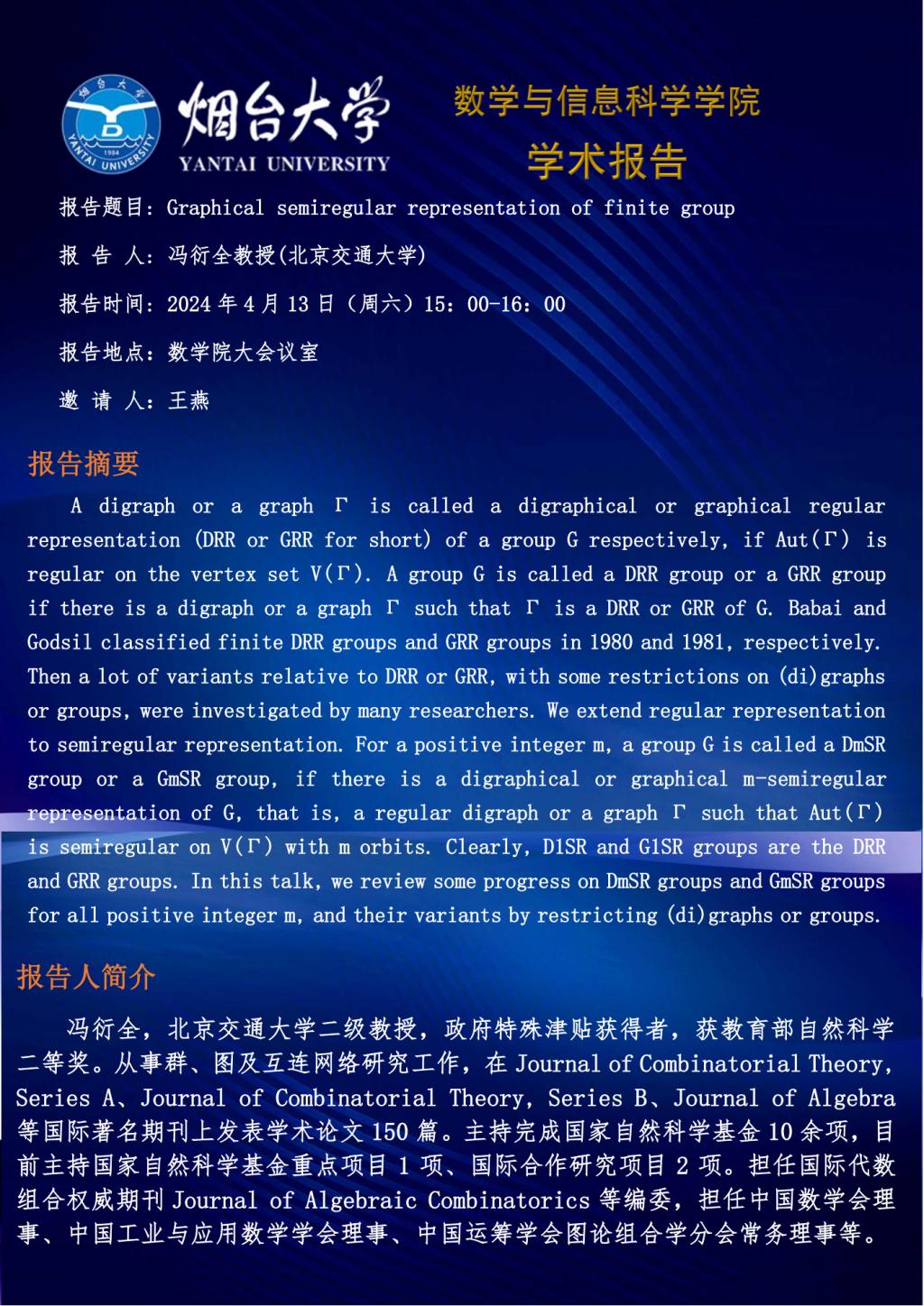 学术报告--冯衍全 教授(北京交通大学)—20240413